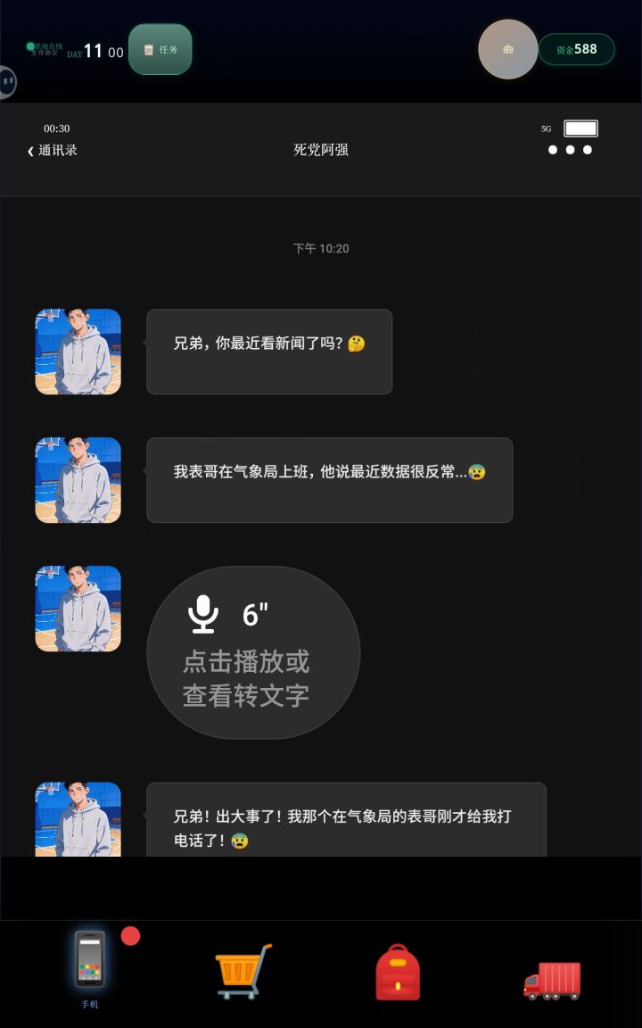 上来啥也不用干,直接把贷款全部吃完,每天问亲戚借款(第一天先问亲戚借款再贷款,第一天全贷款会直接进入第二天,少一次借钱机会),然后全部买入医疗里面每股最低的那个股票微信聊天记录有就点一下王总会爆5000金币:选 收到马上到-好的,谢谢王总小胖爆两万:选 你看到什么了-急需用钱,有多少借多少老妈爆五万:这个有时候爆有时候不爆王经理爆五千:选直接提现吧龙哥选保重不用还钱,不然就得还5000