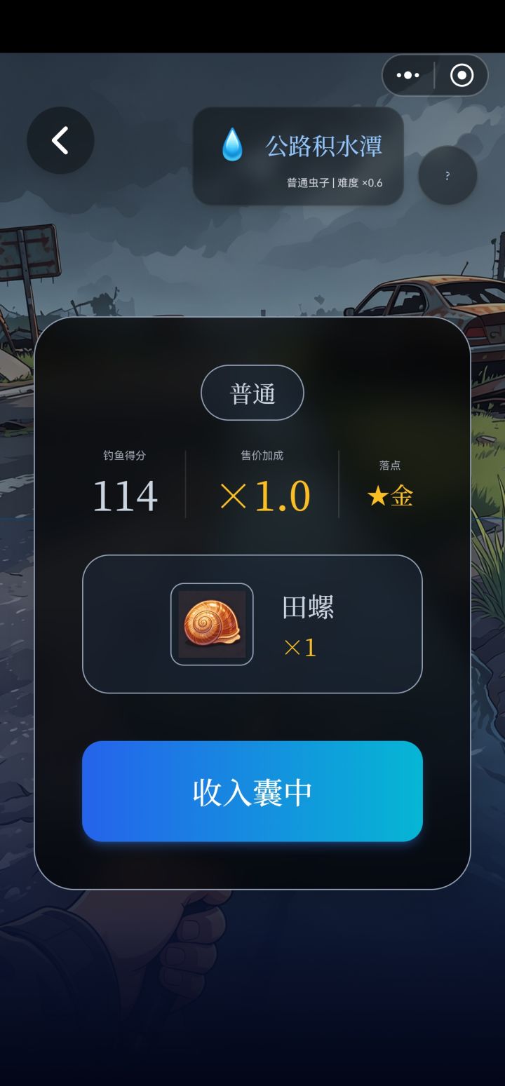 钓鱼系统。。。难评一共分为三个步骤,每个步骤都是能让人血压上升的浪费好几个鱼饵最后终于上来了个田螺