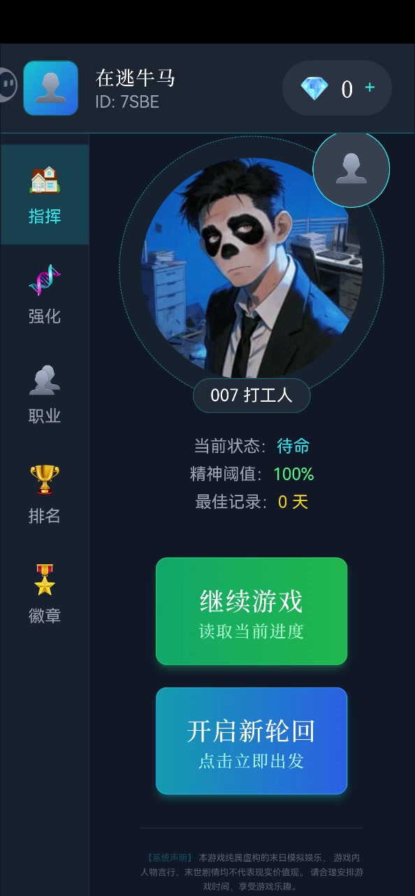 总体思路:前6天不用买任何物资,所有钱全部投入医疗股中价格最高或第二高的股票(第二高的股票可能会涨得更快)。注意尽量攒够一定数量钱时一次性买,不要分太多次,买卖股票均要花费2小时时间。角色选择:任意均可,前期注意右上角心情值不要低于0(尤其是打工人角色,不然直接出局),某些特殊任务和聊天可以免费加心情。具体操作:第一天先拉满贷款以