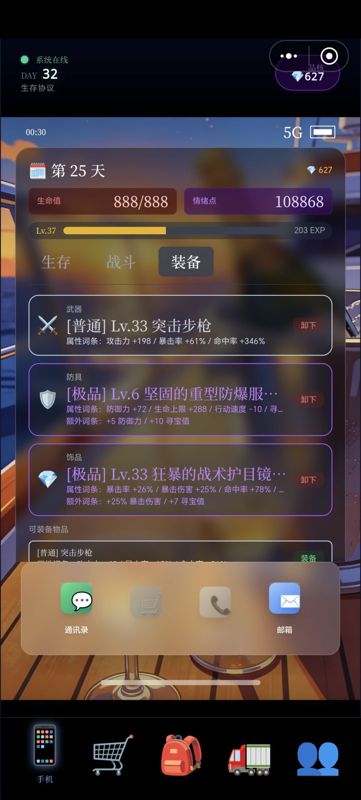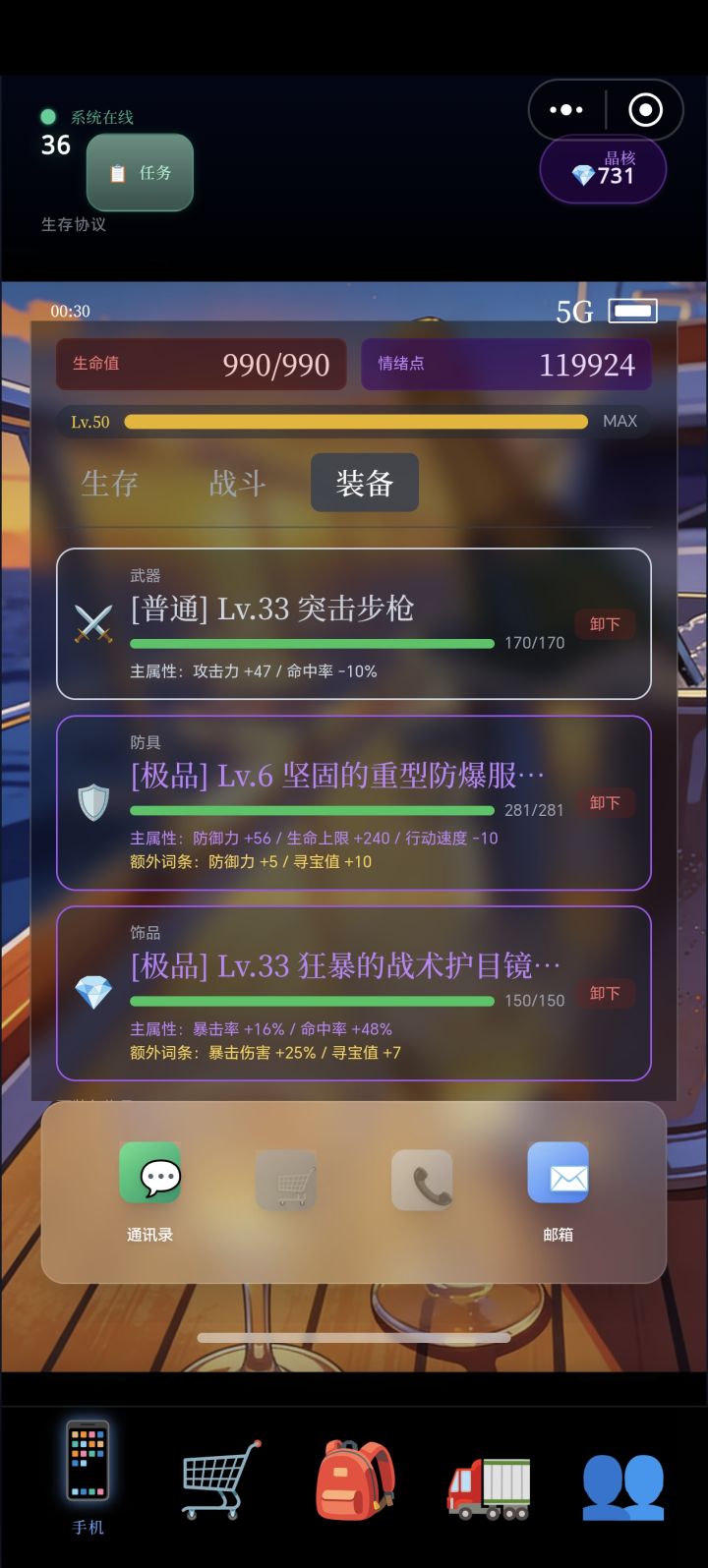 各位共创玩家、幸存者们:C哥还是老样子,玩家提的需求、吐槽的痛点,能改的全改,能加的全加。这次2.1.0版本,主打一个永久养成、容错拉满,废话不多说,更新内容直接摆台面👇🔥 2.1 版本核心更新内容1. 剧情继承解决大家吐槽最多的重复开荒问题,P2阶段意外死亡开新轮回后,下一把直接跳过P1末世前7天微信聊天剧情,不用再从头熬剧情,效率拉满!2. P2任务引导系统(新手老手都不迷路)新