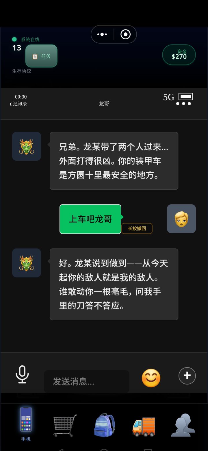 各位共创玩家、幸存者们:C哥还是老样子,玩家提的需求、吐槽的痛点,能改的全改,能加的全加。这次2.1.0版本,主打一个永久养成、容错拉满,废话不多说,更新内容直接摆台面👇🔥 2.1 版本核心更新内容1. 剧情继承解决大家吐槽最多的重复开荒问题,P2阶段意外死亡开新轮回后,下一把直接跳过P1末世前7天微信聊天剧情,不用再从头熬剧情,效率拉满!2. P2任务引导系统(新手老手都不迷路)新