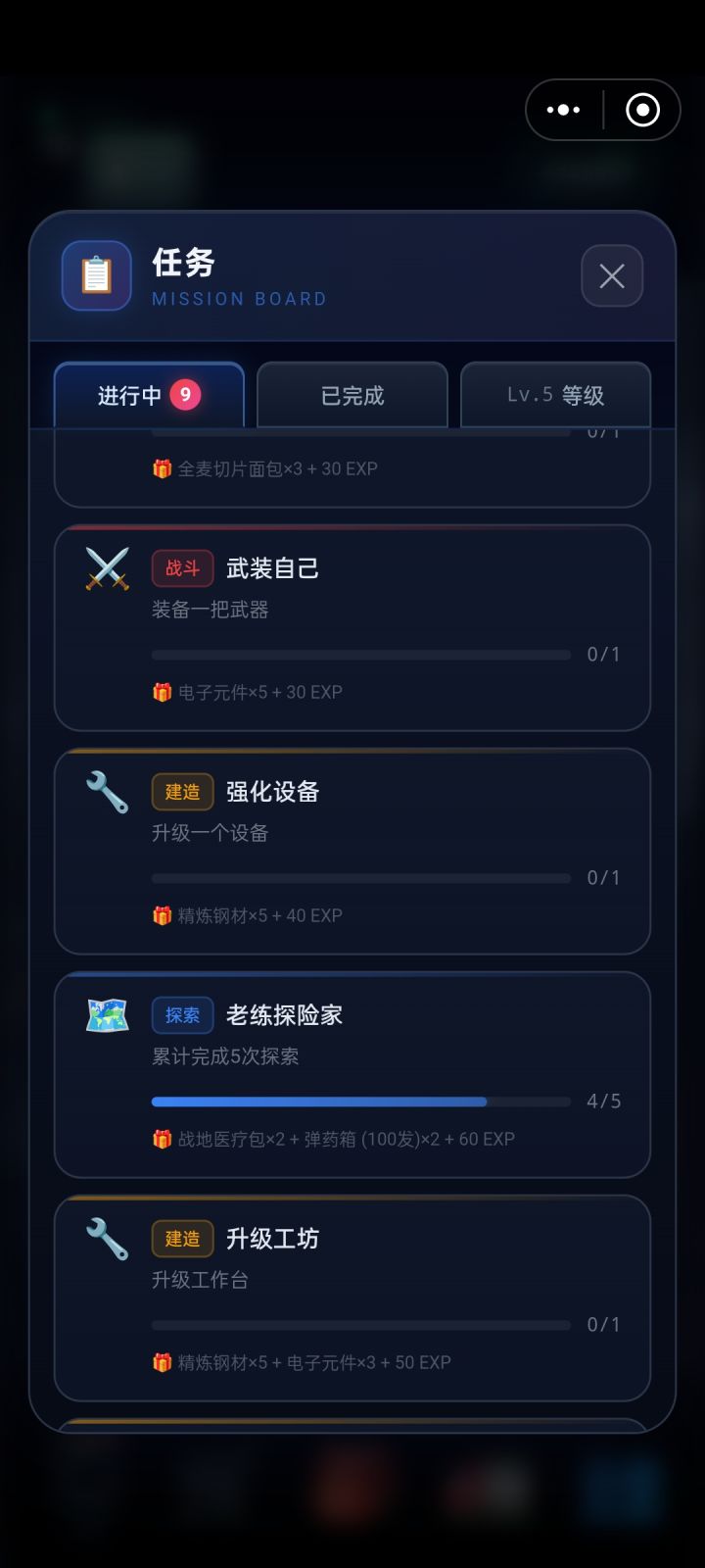升级房车任务和开局房车天赋有冲突,选了天赋任务就做不了了工作台也是,刚进入末日已经有足够材料升满级,这个任务应该改为新手任务
