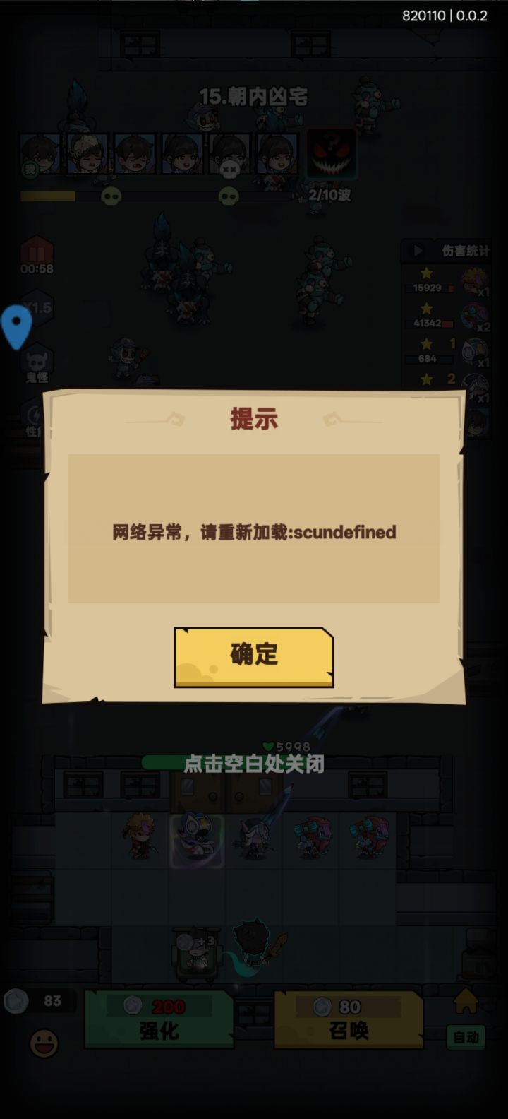 玩法:这是这个防守类游戏,玩法内容和妖怪金手指一样,就是升级床得钱(床的等级越高,每秒的钱就越多,杀怪也有钱),升级门加防(门的血条);然后用钱来招募各种角色进行攻击,用来抵御怪物,强化里可以三选一来强化角色(这里出的三选一是随机的,后面会细说),角色养成和装备强化这一整套,我又觉得有点像永远的蔚蓝星球(记不清了)。总结就是一个缝合怪