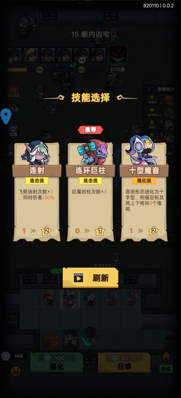 这样的,就背景音乐稍显恐怖,其他没感觉到有啥恐怖的,然后是攒银币抽初级英雄再合成高级的大概,然后强化技能的话也要花银币,有点类似植物大战僵尸的收集阳光买植物的玩法