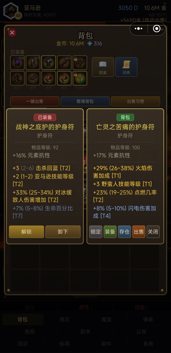 🎮可玩性:可玩性高,有暗黑破坏神的味道,挂机游戏,适合上班族和不喜欢操作类游戏的人,摸鱼党的首选。