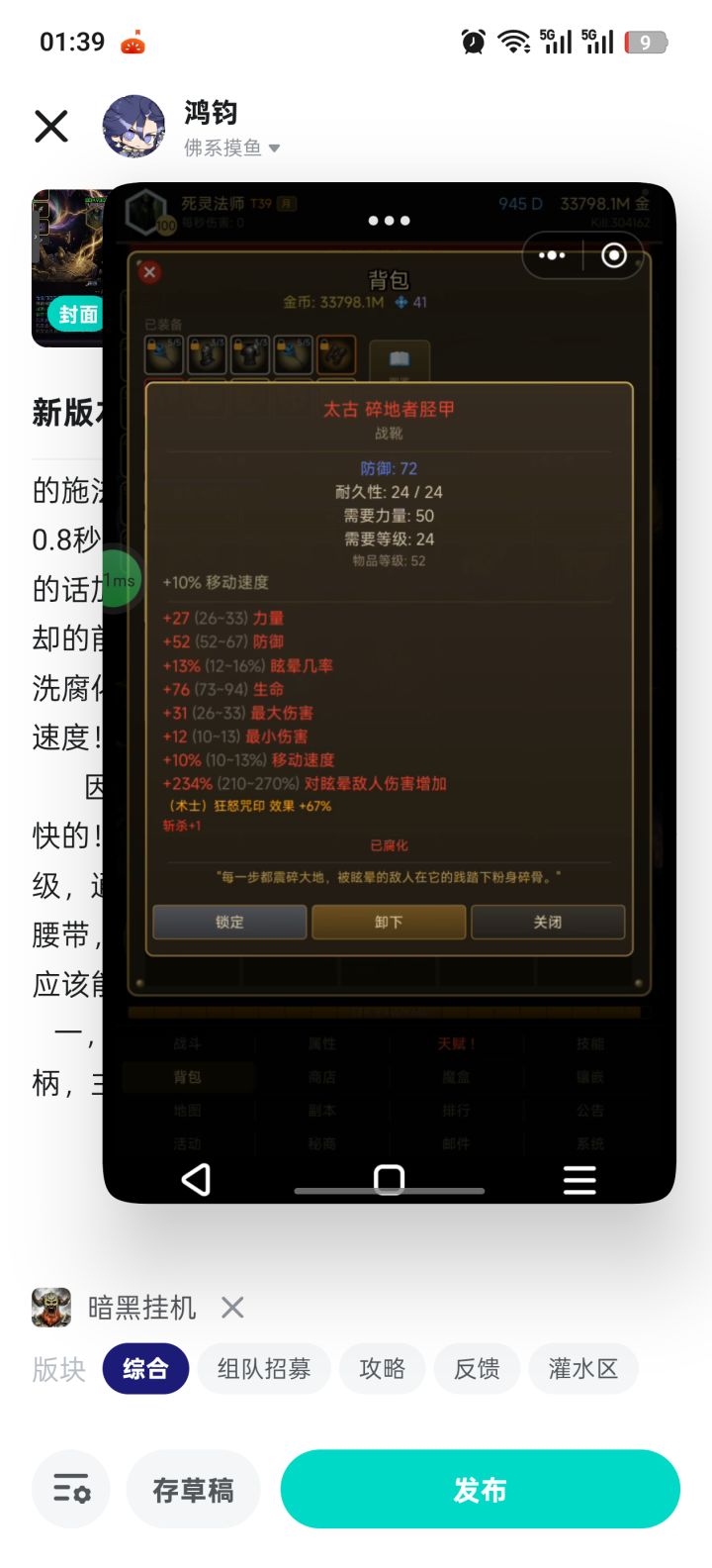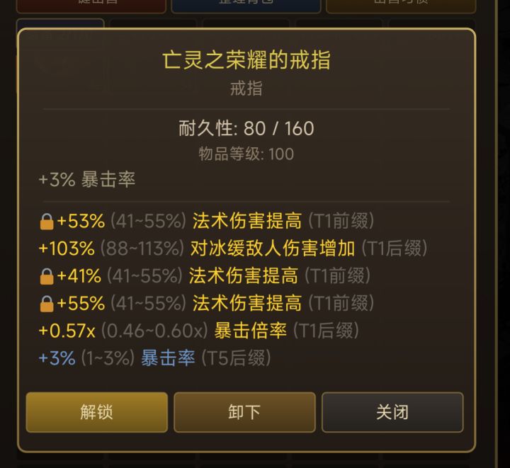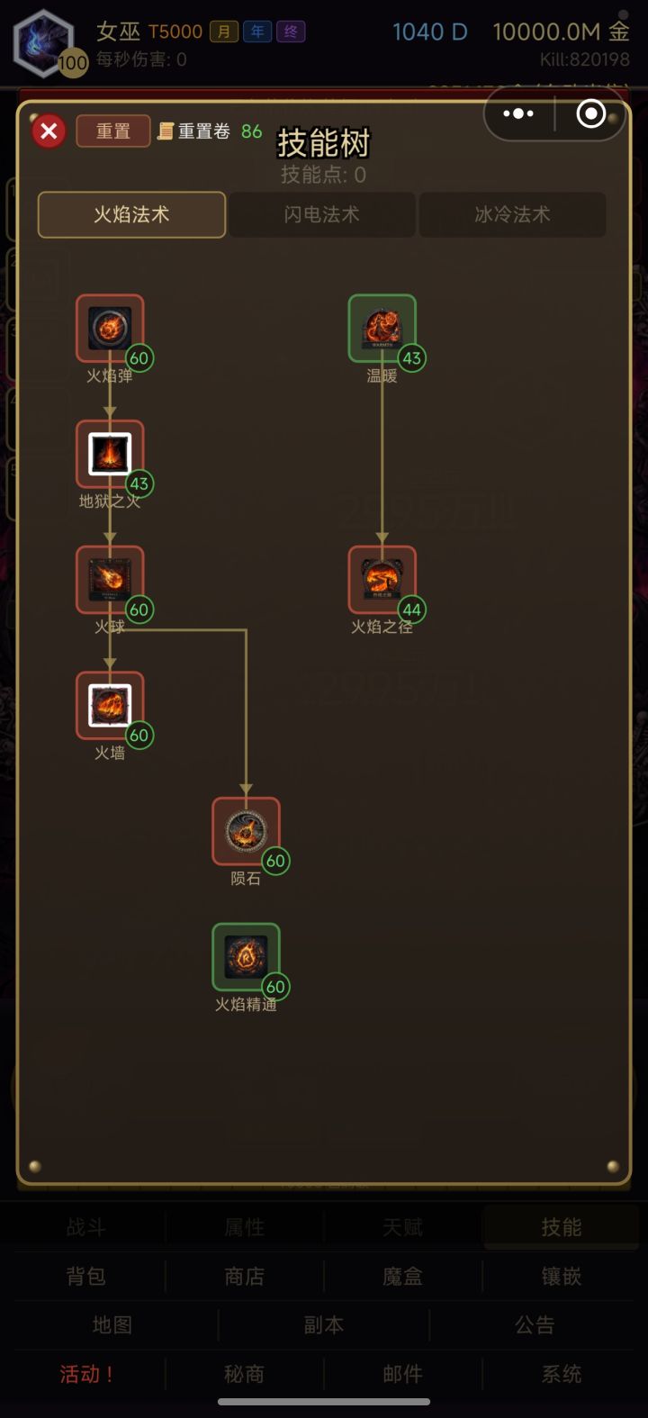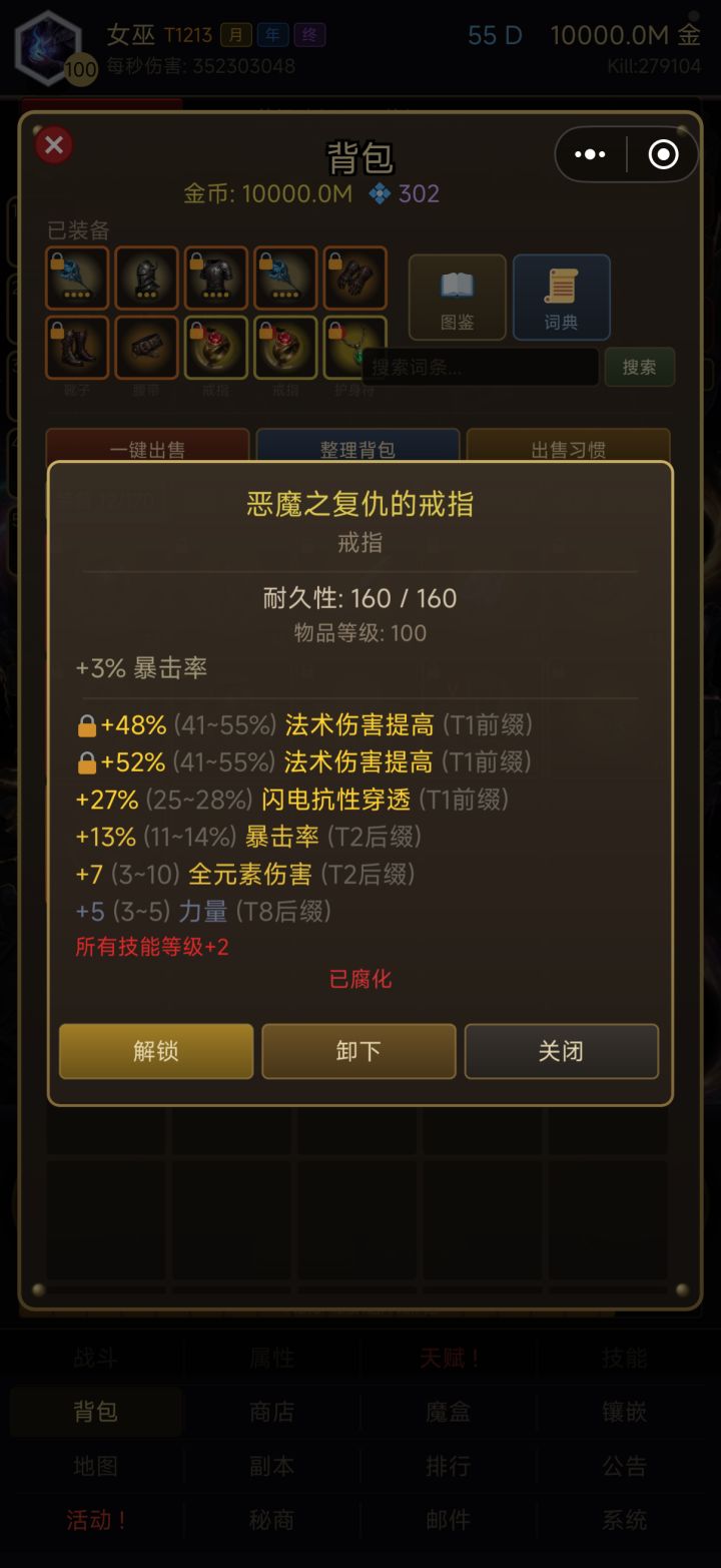 前期装备方面不需要看属性 魔盒一键腐化一件出售 只要+技能等级 死灵最重要的就是技能等级