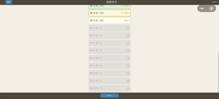 点击三国鼎立,返回后所有关卡重置。
