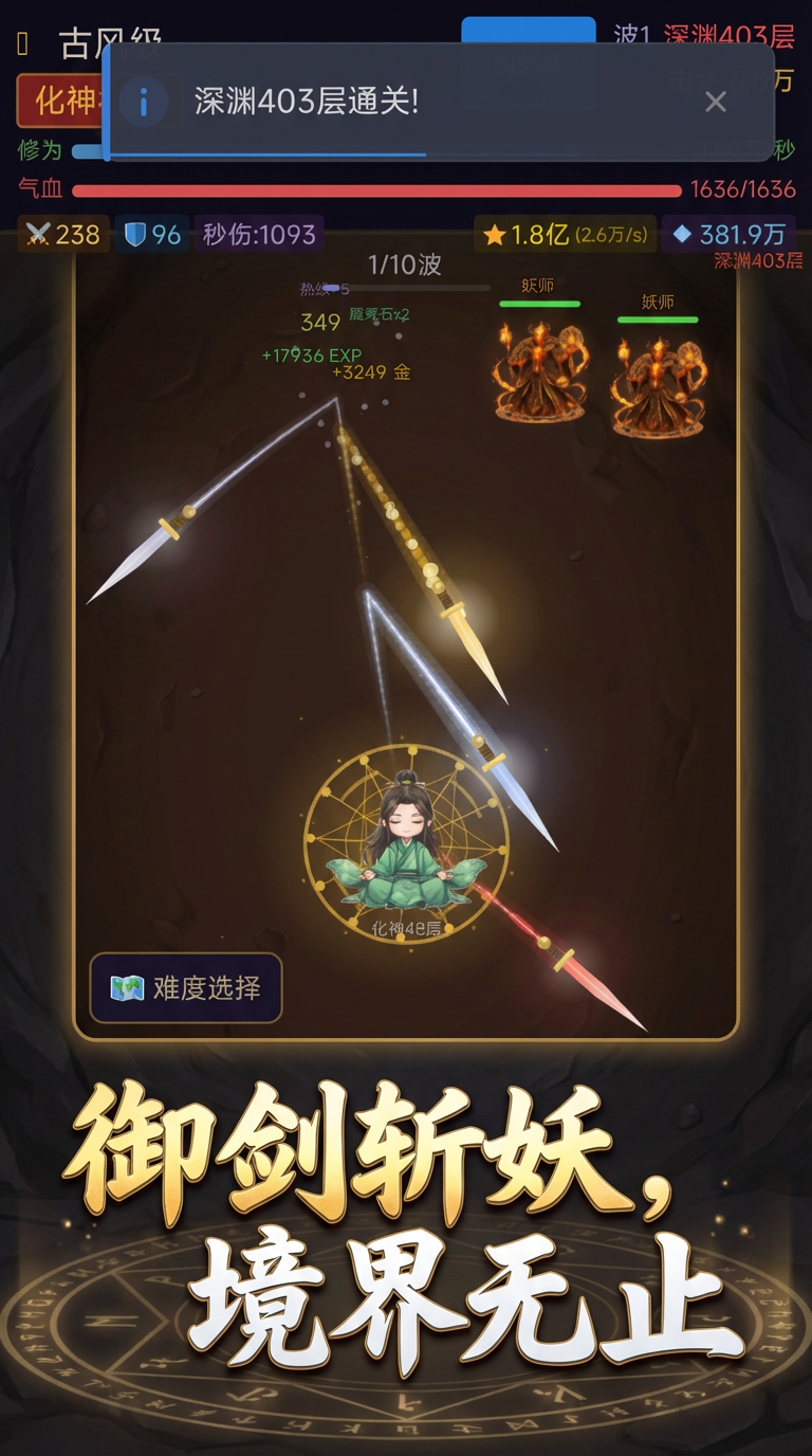 御剑斩妖,突破修仙五大境界!操控飞剑自动战斗,挑战深渊BOSS,收集神兵利器,打造最强剑修。挂机离线也能修炼,碎片时间轻松变强,开启你的长生修仙之路!