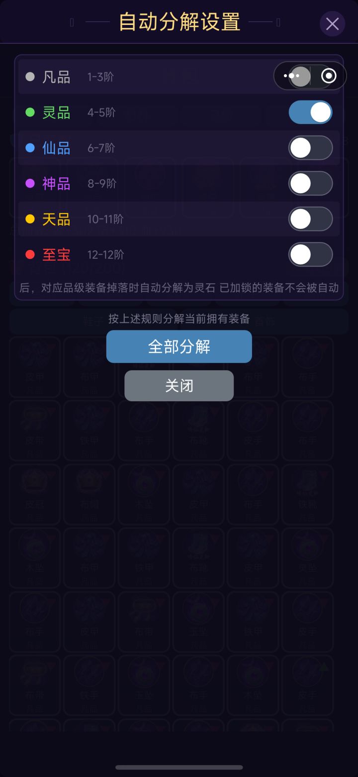 凡品装备怎么分解,点不了,背包都是凡品满了
