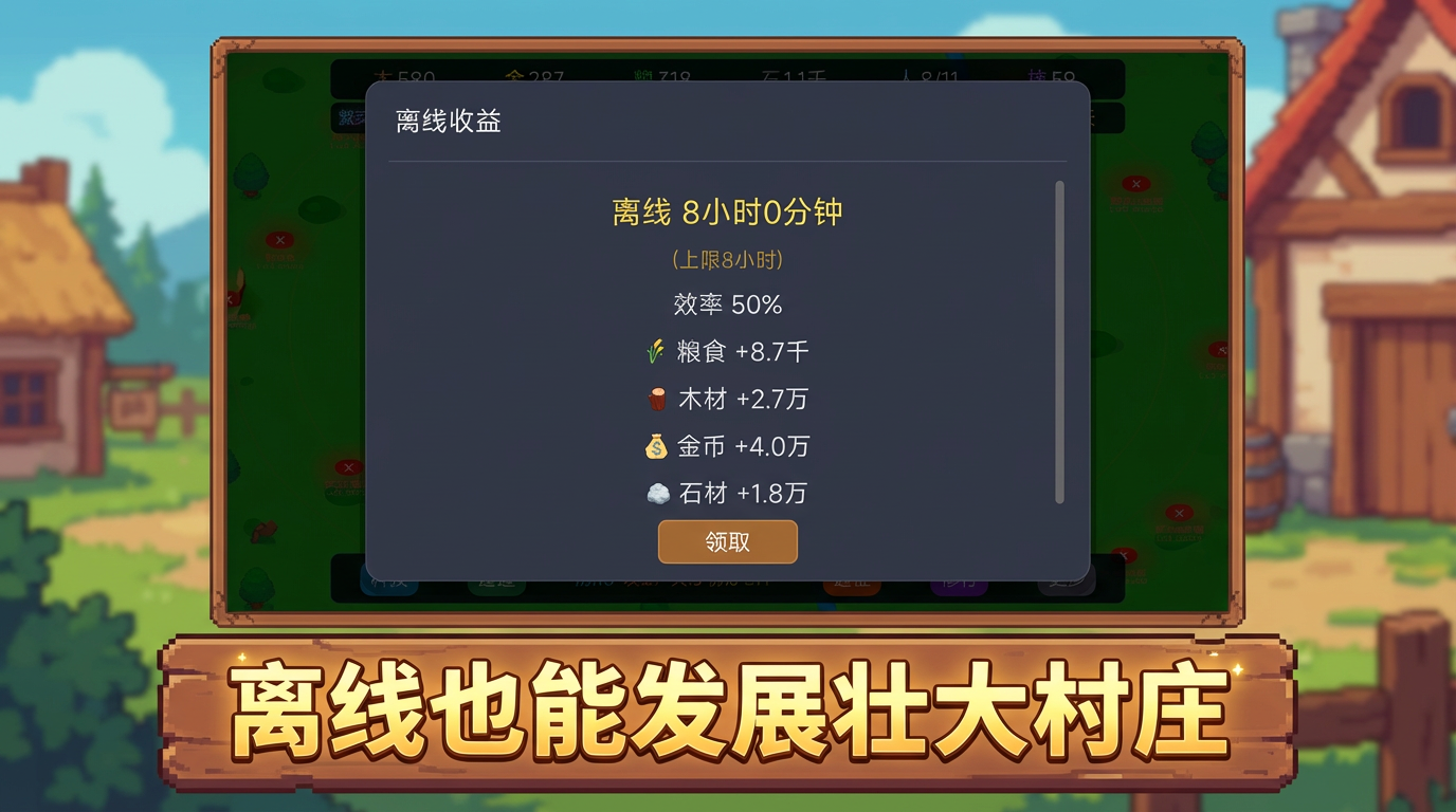 从零开始建造你的村庄!采集资源、建造建筑、研究科技、训练军队,一步步将荒芜之地发展为繁荣的王国。支持离线挂机收益、转生重生系统、成就系统等丰富玩法,让你随时随地都能享受经营的乐趣!