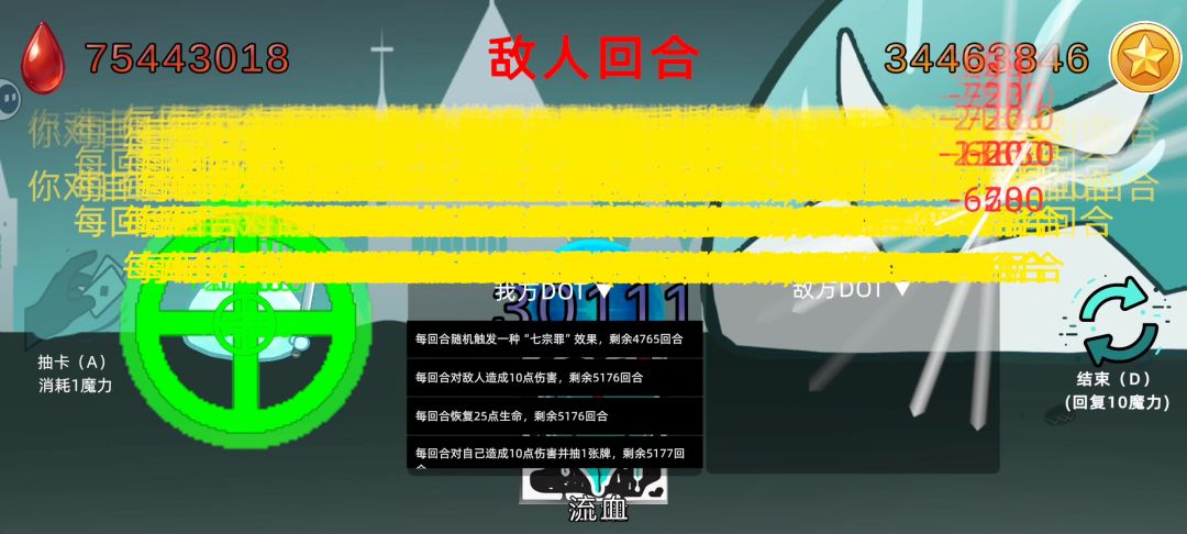 放了张五十多蓝的七宗罪,一开始还好,后来玩了一会又自己放了几张七宗罪,循环开始了。 推测是因为七宗罪有加回合的能力和跳过回合的能力,七宗罪太多,因此加回合加到另一个七宗罪上了,导致那n个七宗罪效果永远不会结束,而七宗罪又有概率跳过回合,数量太多,因此跳过回合的效果始终会触发。 所以七宗罪效果到底有哪些啊?这boss已经成木桩了