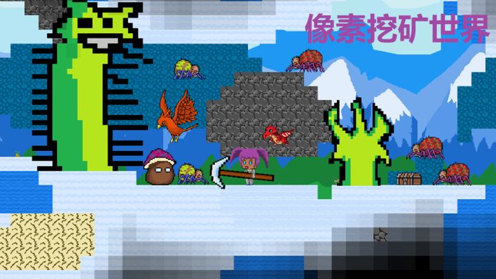 自从一六年立项以来,方向就是挖矿合成建造探险打怪此时的游戏地图是非常小整个游戏没有保存机制游戏场景光照算法也是几乎为零怪物掉血机制效果也是差劲的不得了游戏场景地面还没有自然生成各种植物,也不会刷新怪物怪物种类也不多快捷键只有简单挖掘和放置物块背景也没有分层滚动机制装备只有最简单的附魔精炼镶嵌系统一切一切都是那么的简陋,简陋到不能在简陋整体UI配色极其难看,美术这一点我一直承认