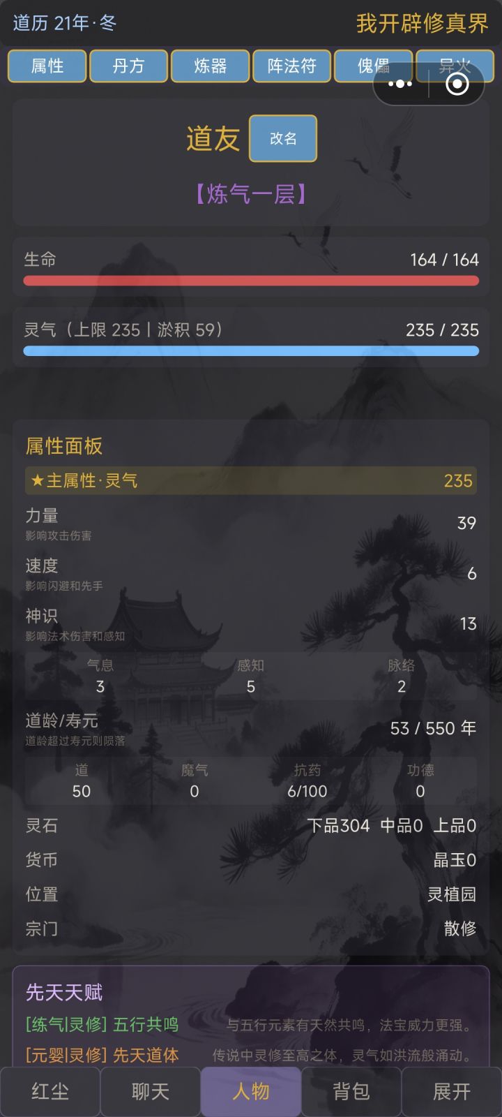 2.天赋。感觉天赋太少,以境界划分天赋属性个人感觉非常完美,与其他游戏不同,天赋不会太过于强大从而影响体验。