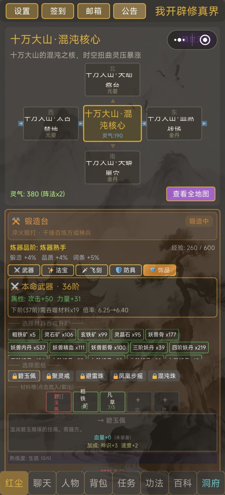 因为我也刚开始玩,对剑修比较感兴趣,但是论坛的攻略又很模糊,于是在摸索一小时后也是彻底弄懂了。首先一开始的话,签到用5个广告币换5000灵石,传送到天机城,这有一个游商,买寻龙摸金符的材料,不过要先做10次回宗符增加经验才能开始做寻龙符,回宗符的材料也可以在游商里买,计算好数量基本上不会亏,寻龙符最好做多几个,能出紫色的就必稳了,接着往右边走买猴儿酒,买完打开地图追踪毒气森林深渊处,跟着指示走,