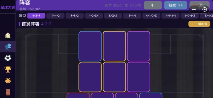希望作者多更一点内容,比如阵型还有点少,我最喜欢的菱形中场4312就没有,还有球员也希望能更多一点,那天切到贝蒂斯想玩一把,居然没有我原神安东尼!big胆!😡