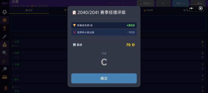 游戏QQ群:1079248027一、游戏概述你将扮演一名足球俱乐部的主教练,通过战术布置、球员管理、转会交易和财务运营,带领球队征战联赛、欧冠、足总杯和传奇杯,最终成为传奇教练。游戏以"周"为单位推进,每赛季 38 轮联赛,穿插杯赛和欧冠。这不是实时操控踢球的游戏,而是一场关于策略和经营的博弈。二、新手开局指南2.1 选择联赛和球队开局时选择一支球队。建议新手选择声望较高、预算充足的球