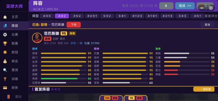 看我钱 800m 我练球员 测试成长 跳过比赛 无意间发现的 概率太夸张 就刚刚欧冠输一场 而且 伤病少球员 5 6个也能赢 😅 因为我跳过太多 导致提示 最少几个球员才能比赛 而且球员成长是不是依照最强属性条来提升可成长最强属性空间 比如一条最强属性99 就可以全部提升到99 因为我有个最强85的 卡在85 99的还能提升