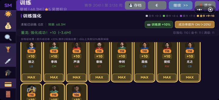 建议拉开传奇球员和普通球员的差距,传奇球员就是传奇球员。很多虚拟球员,现实中完全不存在,能力值甚至比传奇球员还高,比如几个门将是虚拟球员,能力比布冯高,这就不科学了,失去了足球游戏的意义。还可以延长传奇球员的巅峰期,比如从34岁开始衰落,没道理C罗梅西30岁能力值就不到90了。一赛季长一岁是科学的,这可以不用改,可以提高传奇球员的身价,增加耐玩性。球员可以更详细的划分,比如球王是一档,传奇是一档,超巨是一档,巨星是一档,球星是一档,普通是一档。大罗,马拉多纳,马尔蒂尼,布冯,C罗,梅西等等是球王,姆巴佩哈兰德只能是传奇,因为荣誉都不在一档。
