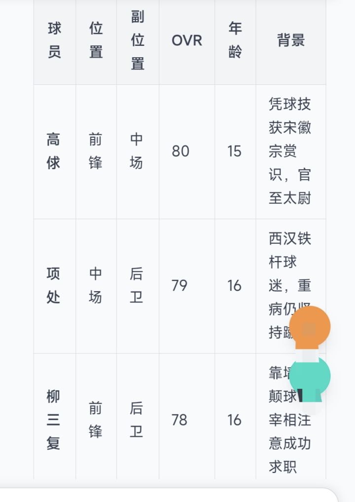 新增三位中国籍隐藏球员:高俅、项处、柳三复