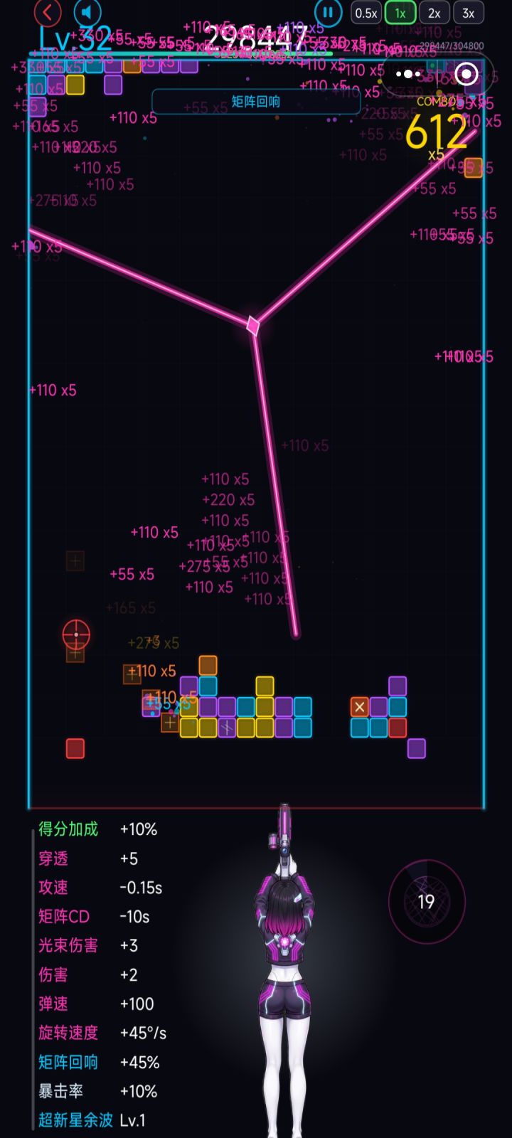 更新后激光依旧拉胯啊,只能靠矩阵流派渡过前期,而且是天胡减cd,第二三个流派前期就直接被方块骑脸了,根本没时间发育。我觉得矩阵流派可以增加普攻减少矩阵cd的词条,增加矩阵释放频率,否则压根不能无缝矩阵,后期没得玩了。二三流派增加前期aoe词条的权重,或者重新调整下形态,单点输出有点不适合这游戏。另外,脉冲新星这个技能好像有些抽象了,就biu一下,然后没了,快到我甚至没看出来我用了技能,效果也不是很厉害,是不是可以改成全图穿透从左往右横扫的方式?类似雨刷器那样。