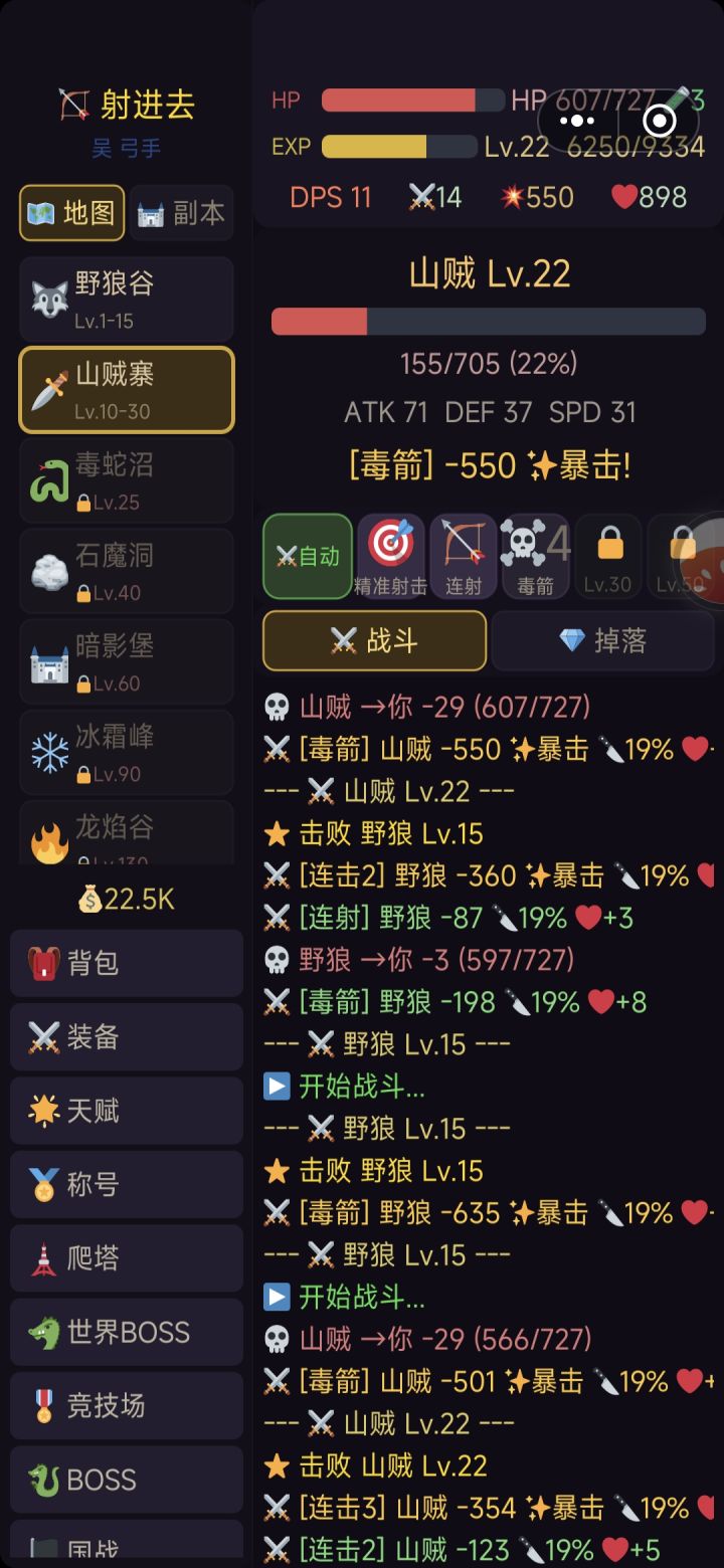 经典的放置游戏,有4大职业,阵营系统,不同阵营 能增加属性 比如魏国加攻击,秦国加防御。内容玩法挺多的,有国战 世界boss,还有竞技场。总体很不错!