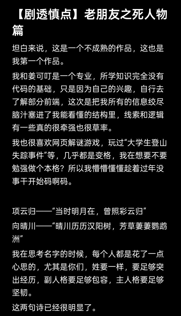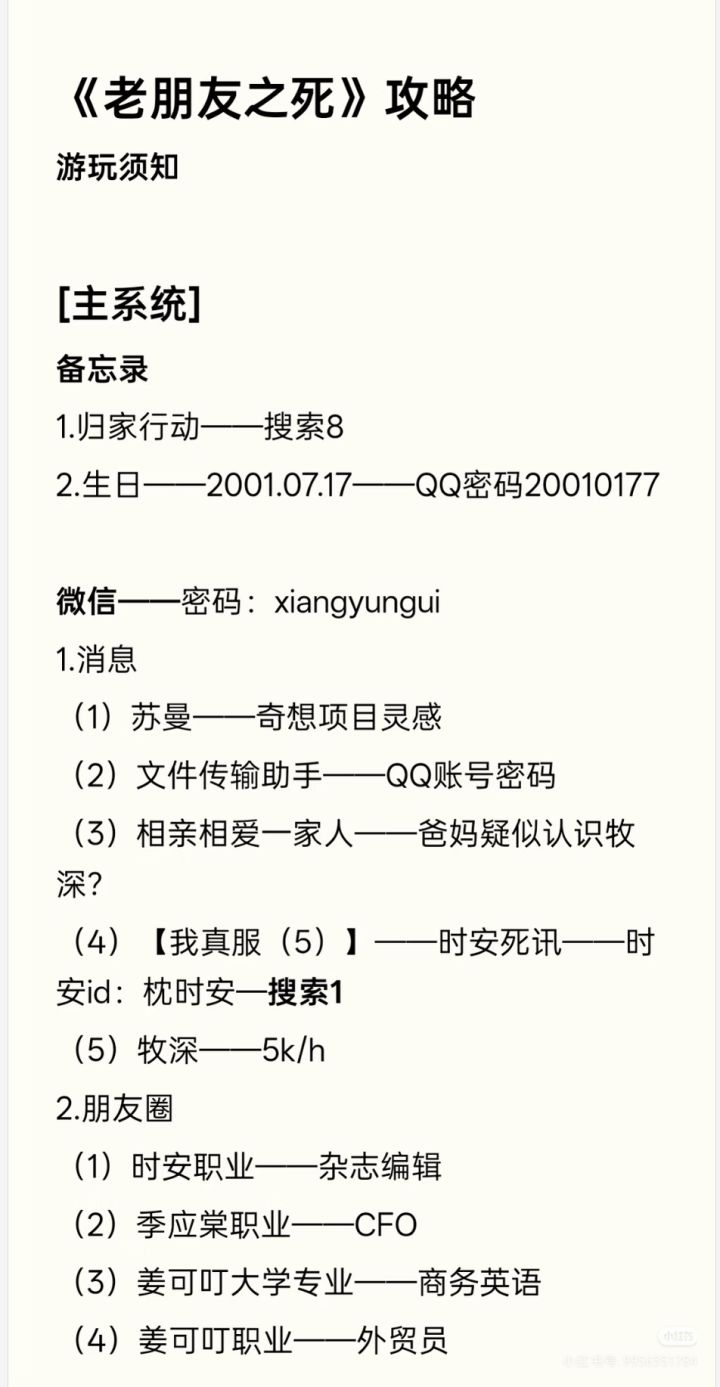 老朋友之死攻略