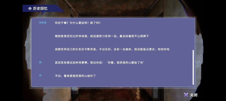 本游戏的可玩性还是比较可以的,需要选择坦诚的选项才能够达到真结局,我想这可能和文中埋下的一些细节有关:女主曾提到她不喜欢说谎;主角知道他有幻想症,也不愿意治疗,或许他幻想出来的爱人林诗语是他在这个世界唯一的支柱,他所幻想出来的人,真正理解自己,关心自己,陪伴自己(说实话这块有点共情了),让他不想加以隐瞒