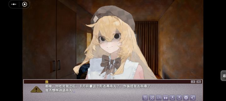 欢迎大家在帖子下面询问有关剧情以及其他方面的问题,到时候会收集一下一一解答然后我稍后会回答之前的一些疑问(彩蛋)问:这张图片是伪人林诗语吗?答:是也不是(详细答案留在完整版剧情中)另外一些简单解释:该游戏文本约为1.8万字,作为游戏当中的第3章,完整版大约为7万字到10万字,以我个人灵感为准,因为我写的断断续续的,经常会卡住()之后游戏标题会改为完整版的