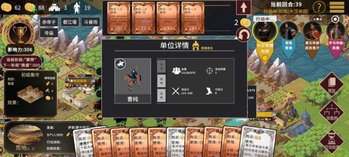 目前看到的Bug:卡牌急行军&死战的时限没生效音量设置为0时也有声音遇到的问题:每回合回复不直观操作极不流畅(兵种)缺小指引
