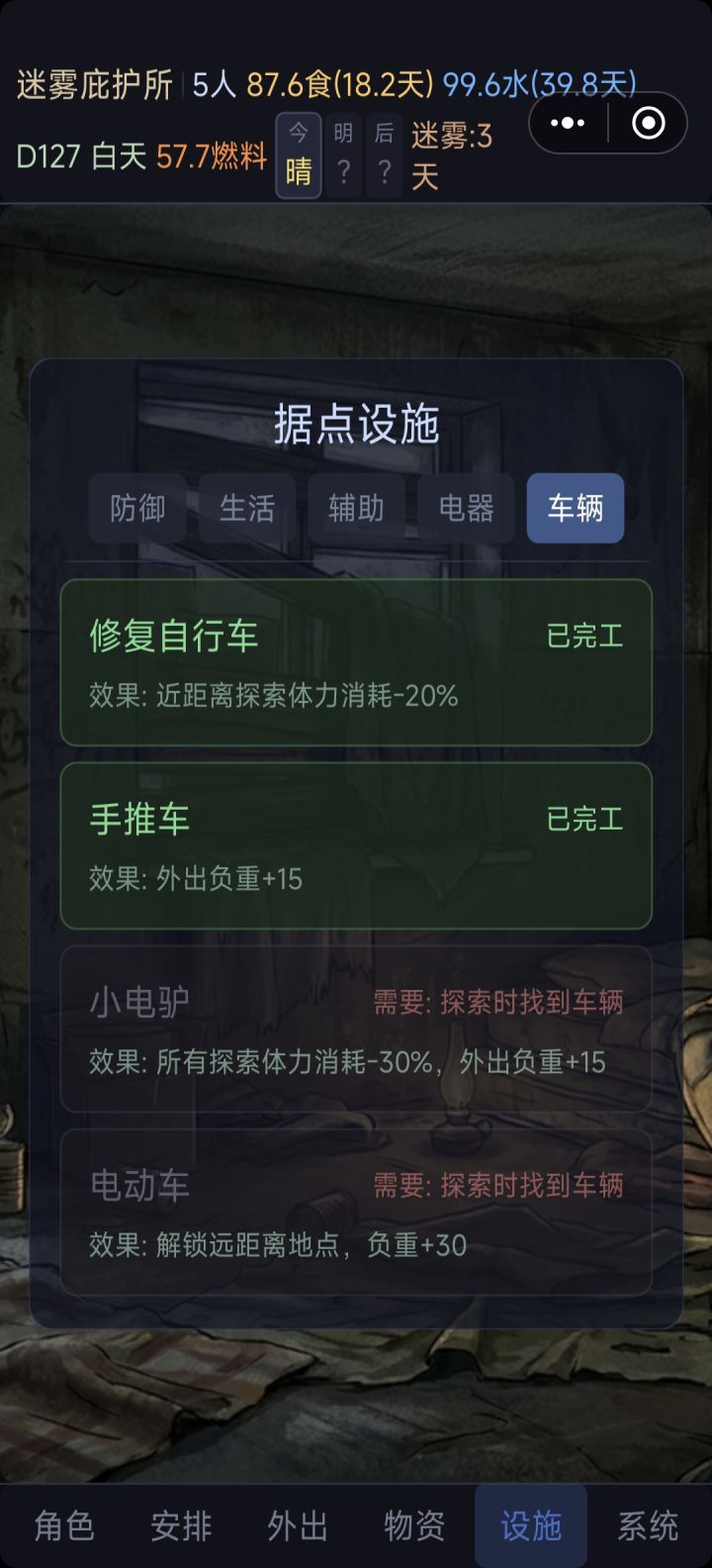 玩了230多天除了那个需要种子的差一个都建设满了,然后我看有战斗功能,迷雾开门了直接死了一个,一共就三个,战斗功能是和谁打啊