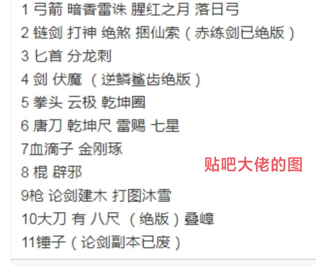 退游半年了,好久没更新了 (*≧▽≦) 一、武器攻略(匕首易武很容易中,打完一套易武就行,倒地易武接倒地追击,没倒地闪轻轻重轻,以下省略) 长剑:轻轻轻重轻 重重重(别搞错) 易武剑轻轻重轻 PVP带刃舞织或步月回风+鬼牙突 PVE带刃舞织+气旋斩 刃舞织重重重(可以打三次) 气旋斩重重闪轻轻轻重轻 鬼牙突重重闪轻轻轻重轻 步月回风重 步月回风可以反向用来突进 气旋斩剑气、鬼牙突剑气打不了倒地敌人