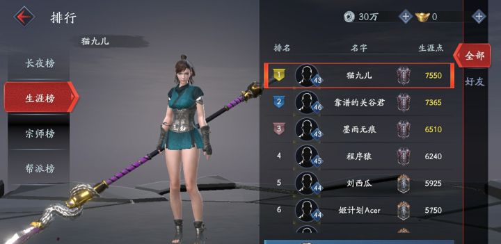 一开始排行榜看不见这位,两天前突然宗师榜和生涯榜上第一,论剑上求败