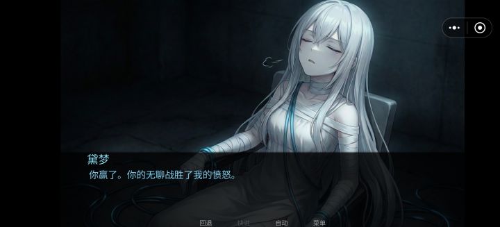 到这个游戏了却变了,我会失去看下去的欲望,因为他涵盖很多本不该出现的理论,是一种新奇的却不想尝试的心情,至于这个剧本,我的评价是相当“无聊”,但其区分于常规无聊的将就,这种“无聊”更像是代入这款游戏中必要的一环,因此也不会因为无聊而忍受不下去,而这也是我为什么会说没有欲望却仍玩下去的原因。