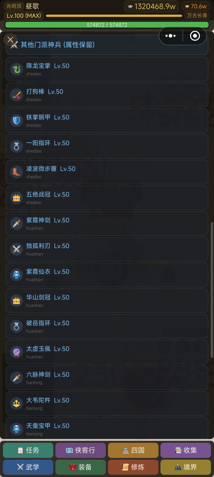 非常好玩的放置游戏,武侠风格,页面布局舒服,游戏玩法众多,装备、伙伴、侠客行各种副本、收集、成就、属性、境界、称号等等,所有都是游戏内产出,难得好游戏。
