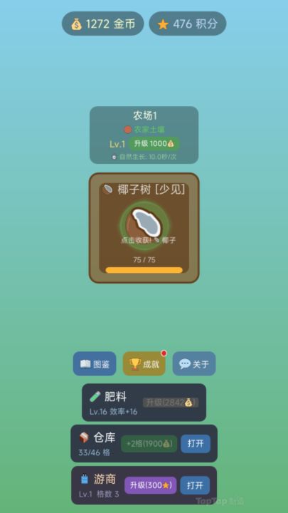 挂机放置类游戏,很适合闲暇之余点点屏幕种种菜。希望新鲜的作物能和你每天的好心情一同出现!