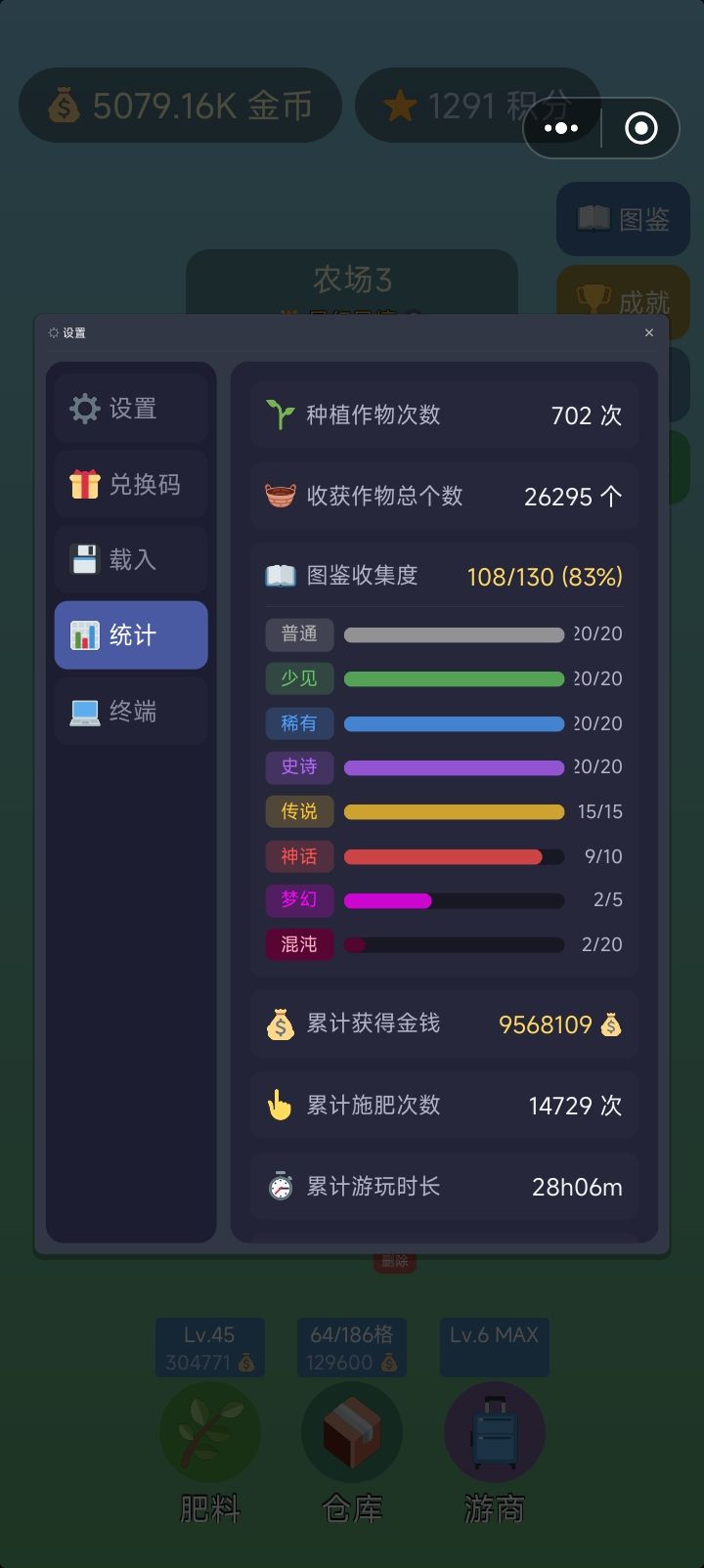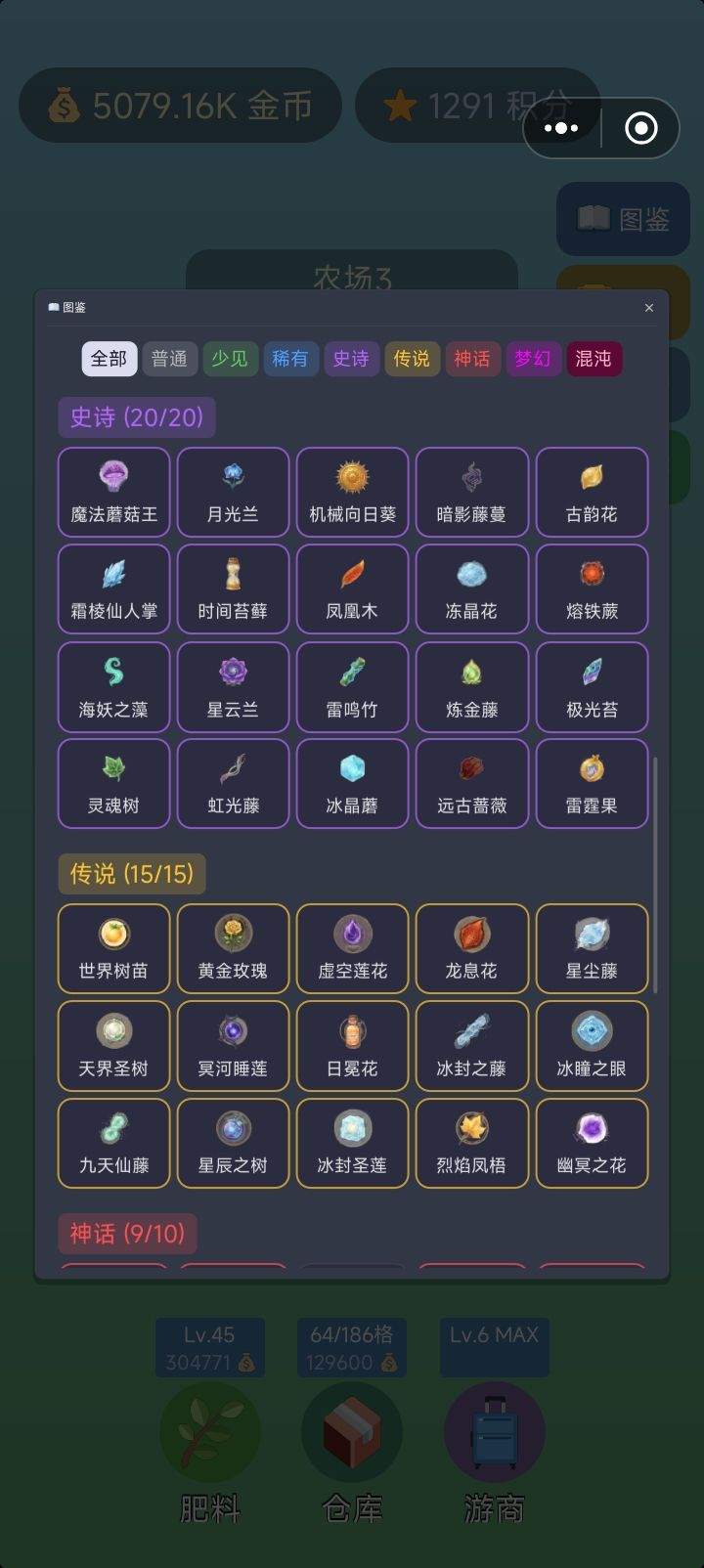 bug方面:修复了野种种不出神话的问题修复了部分耕地无法播种和收获的问题功能更新:收获产量,优质概率,野种出货概率公示野种明确划分稀有度,仓库分为产物和种子,其中种子不占用库存肥料现在分为农家肥,合成肥和试验肥三种,增加长按连续施肥,施肥暴击的效果,暴击将对作物收获提供产量/优质率/野种稀有率加成增加大量设定信息,在土豆终端输入/tips获取作物图标重新绘制提高了传说和神话作物出