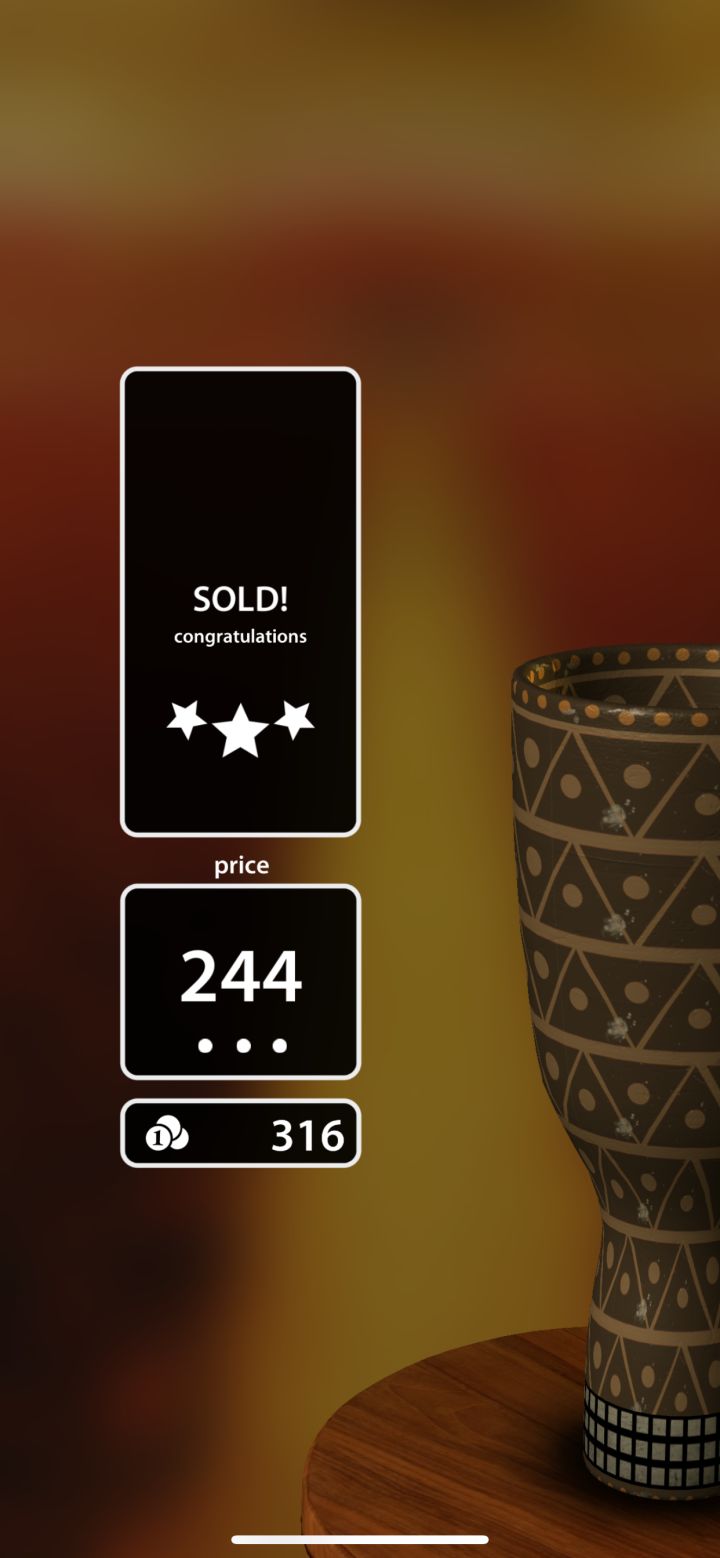 这游戏非常的文艺,适合一个人静静的玩,烧火的音效感觉挺让人安心的,就是diy一个自己的瓶子,然后去卖,不过这个瓶子你做多丑没关系,只要图案多,颜色好看就可以卖好多好多d的钱了。它也会有任务给你,就是按照他的要求做瓶子,然后又给钱你。