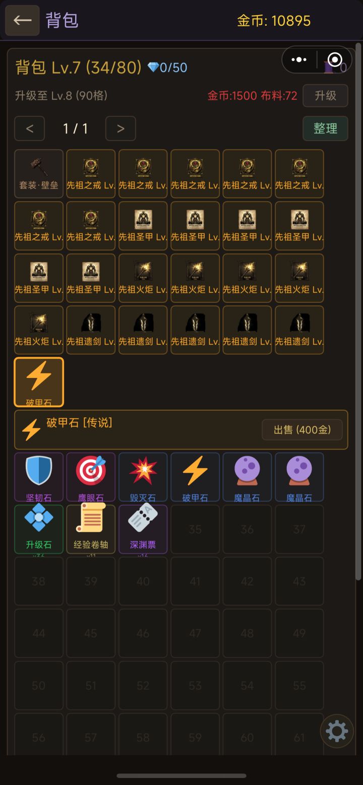 玩了一下午,几个问题1、装备增幅在哪,没找到,是等级太低还没开放吗?2、深渊掉的东西太少了,90几波下来,关中都选的搜刮战利品。结算装备才4个。3、1图的破甲石、坚韧石是干嘛用的,又不是材料又不是宝石。还弄个品级分成。归类是装备但是又没有属性,是区分开卖那一百几十个金币吗4、商店bug,点了出售界面按钮没反应。依旧停留在购买页面。