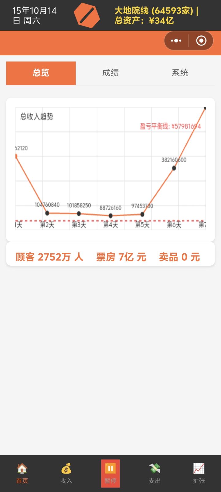每周五上映新片,记得排片关注卖品库存,不要断货关注合作机会多宣传调整维护周期.空调状态.营业时间可以调整成本多开分店...................游戏没图片就不说了,想要的功能连三分之一都没做出来,实在能力有限,大家多包涵!谢谢🙏