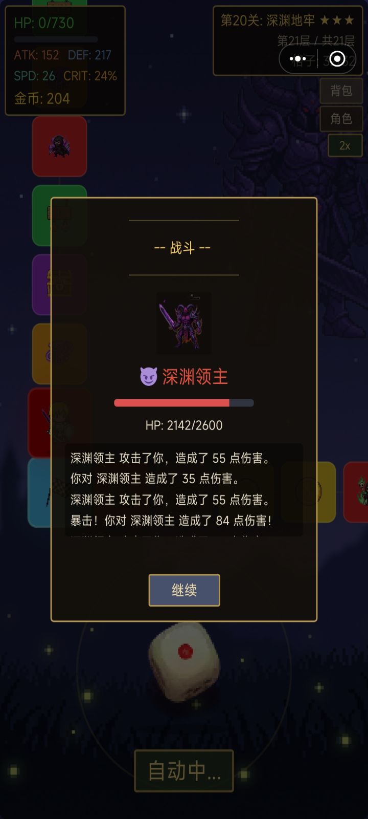 所有都满了20关boss依然打不了 目测boss270+攻击,想打要么调数据要么等版本更新了