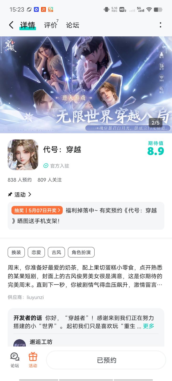 五星必须给满!谁懂啊!《代号:穿越》的设定简直是为我量身定做的!穿进古风剧本改写剧情,再也不用被降智剧情气到血压飙升,这次我要亲手写自己的爽文结局!不管是清冷贵气的女主造型,还是又苏又撩的狐系男主,都长在我的审美上,加上换装和建造玩法,想想就超心动!已经预约+关注官方了,每天都在蹲新消息,希望能早点拿到内测资格,体验一把改写人生的快乐!冲就完事了!