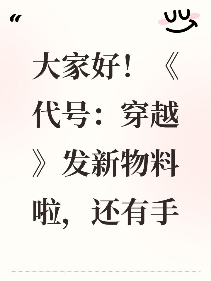 大家好!《代号:穿越》发新物料啦,还有手