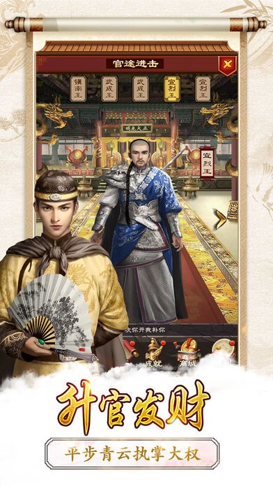 文有计谋,武有策略;声名鹊起,飞黄腾达;红颜知己,女儿情长;江湖恩怨,尔虞我诈。你的所有雄图抱负都能在此展现得淋漓尽致。玩家在升级过程中可不断解锁新功能板块,策略养成精彩不停。