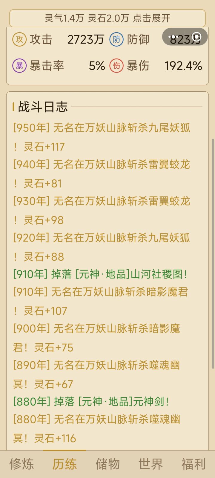三个小时离线挂机,灵石8000,装备没有,这是只能在线玩吗?
