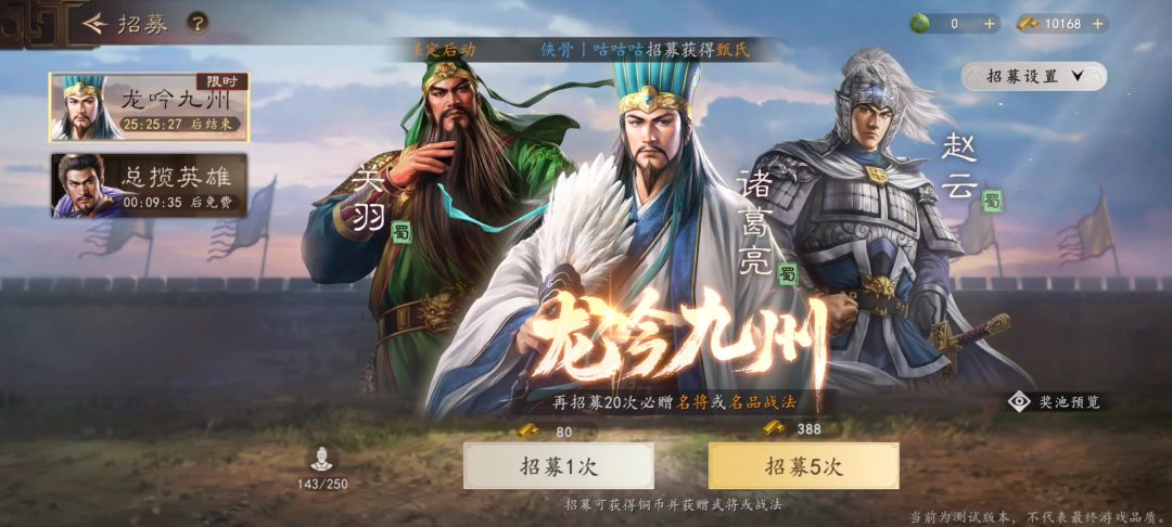 开荒前最重要的一步!抽卡!选好洲以后直接点击邮件领取2.5W黄金一共320抽,并且附送一个开荒神卡奶妈:甄氏将 2.5W 黄金全部抽掉,运气好可以出甄氏的上位替代以及后续要用的3号位输出武将前期用初始自带的武将卡: (主公+甄氏) 即可轻松开荒 配队逻辑队伍中存在(御值)设计,部队武将的御值总和不能超过队伍里(御值)的最大值,随着游戏进程(御值)的最大值会越来越高,开荒阵容也会持续迭代