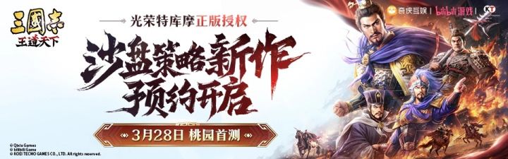 诸位主公,今朝初会,不胜欣喜!光荣特库摩正版授权,沙盘策略新作《三国志:王道天下》现已开启预约,诚邀各位主公共赴这场热血纷争,书写属于自己的三国霸业!▉ 桃园首测资格招募招募时间:2026年3月18日-3月25日18:00测试时间:2026年3月28日10:00开启预下载时间:2026年3月26日测试类型:不计费删档限号测试测试平台:安卓▉ 测试参与方式1、 测试招募:填写Tap