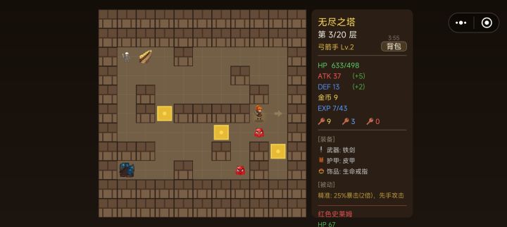 通关无尽模式200层,打一打就没有小怪了,在打一打宝石都没有了,一路全是钥匙和血瓶,只有每5层打打boss