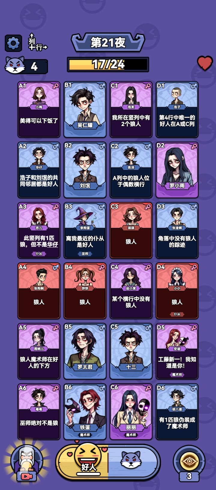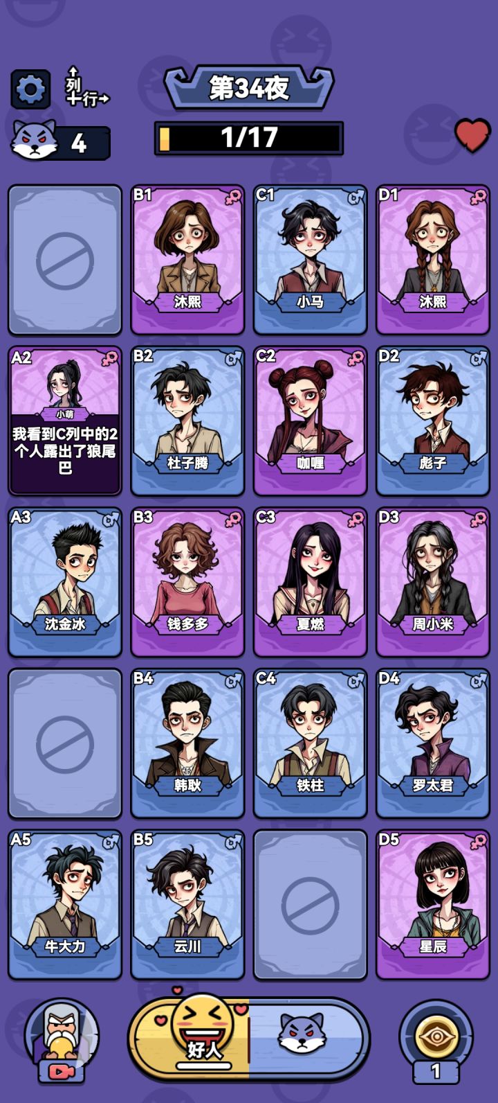 话话😭这个是只能靠命硬去赌一个不,c列有四个人又没别的线索,咋判断谁是好人