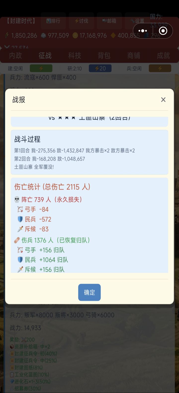 昨天晚上没更新征兵数量前,我第二回合打死他应该是不会受伤和掉兵的,这个现在是恢复了正常的判定吗?更新前我打土匪大概是总计打150w伤害左右(战力最高的土匪),现在这个他的血量是又加了50%吗?第一回合我打死了一部分兵第二回合还能按满兵给我造成伤害吗?