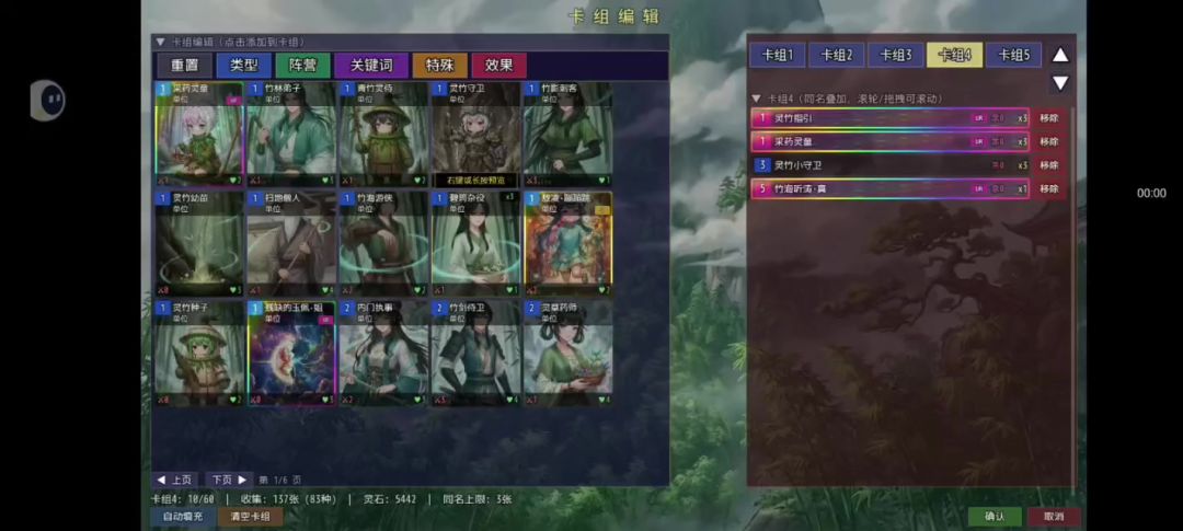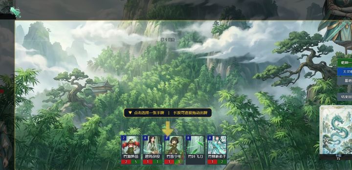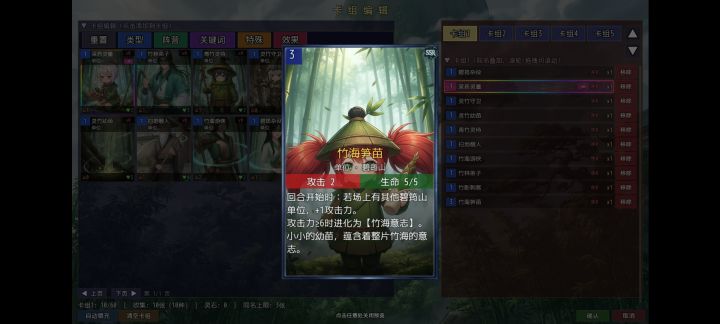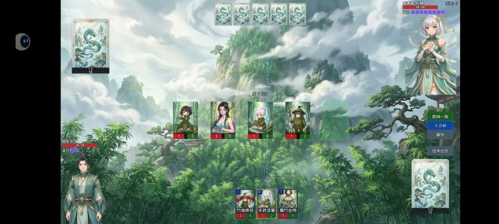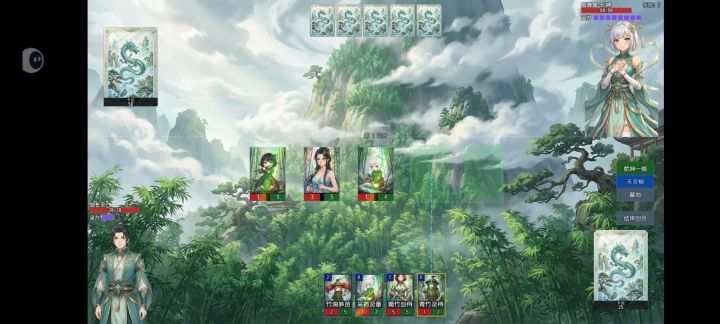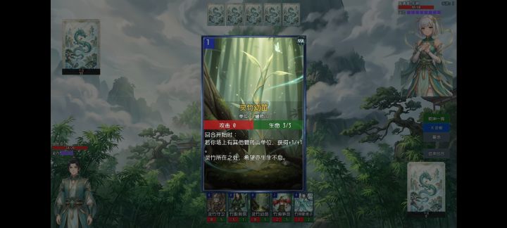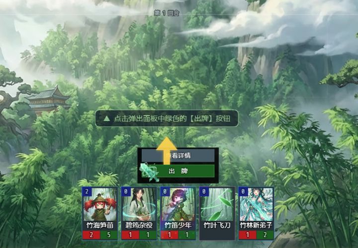 要求灵力4以上 采药灵童*3 灵竹小守卫*3 灵竹指引*3(防卡手牌,缺的话可换别的加血上限牌,就是运气不好得重开) 竹海听涛•真*1(打大师姐带着较好清杂怪,非必要)
